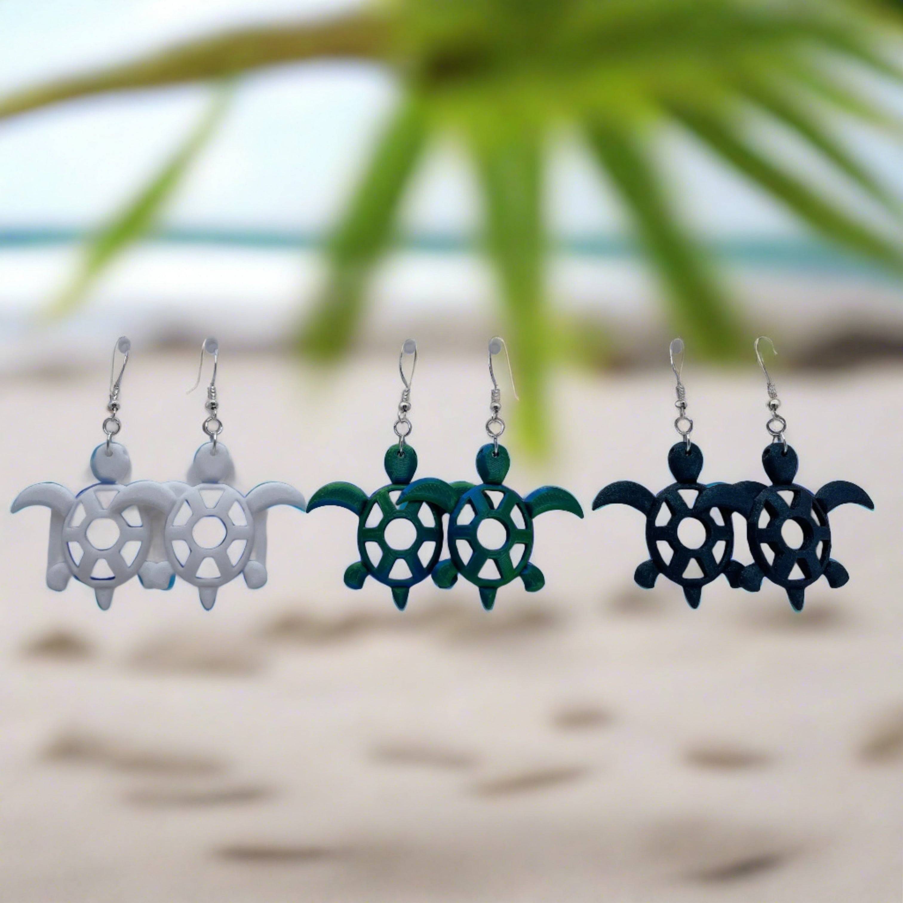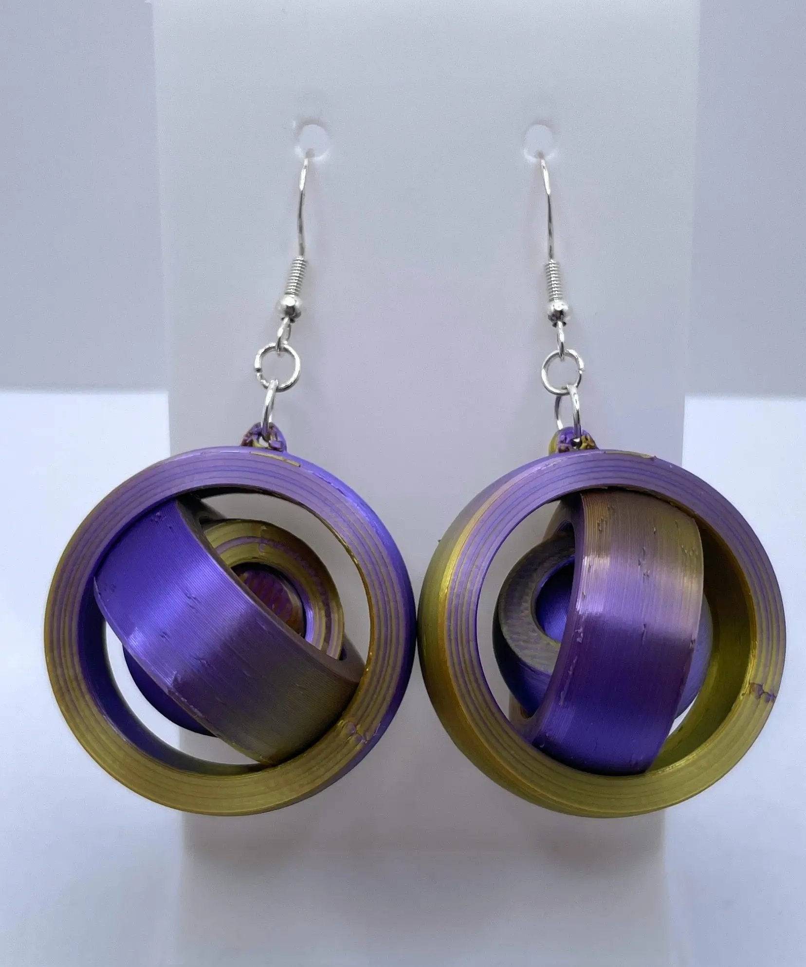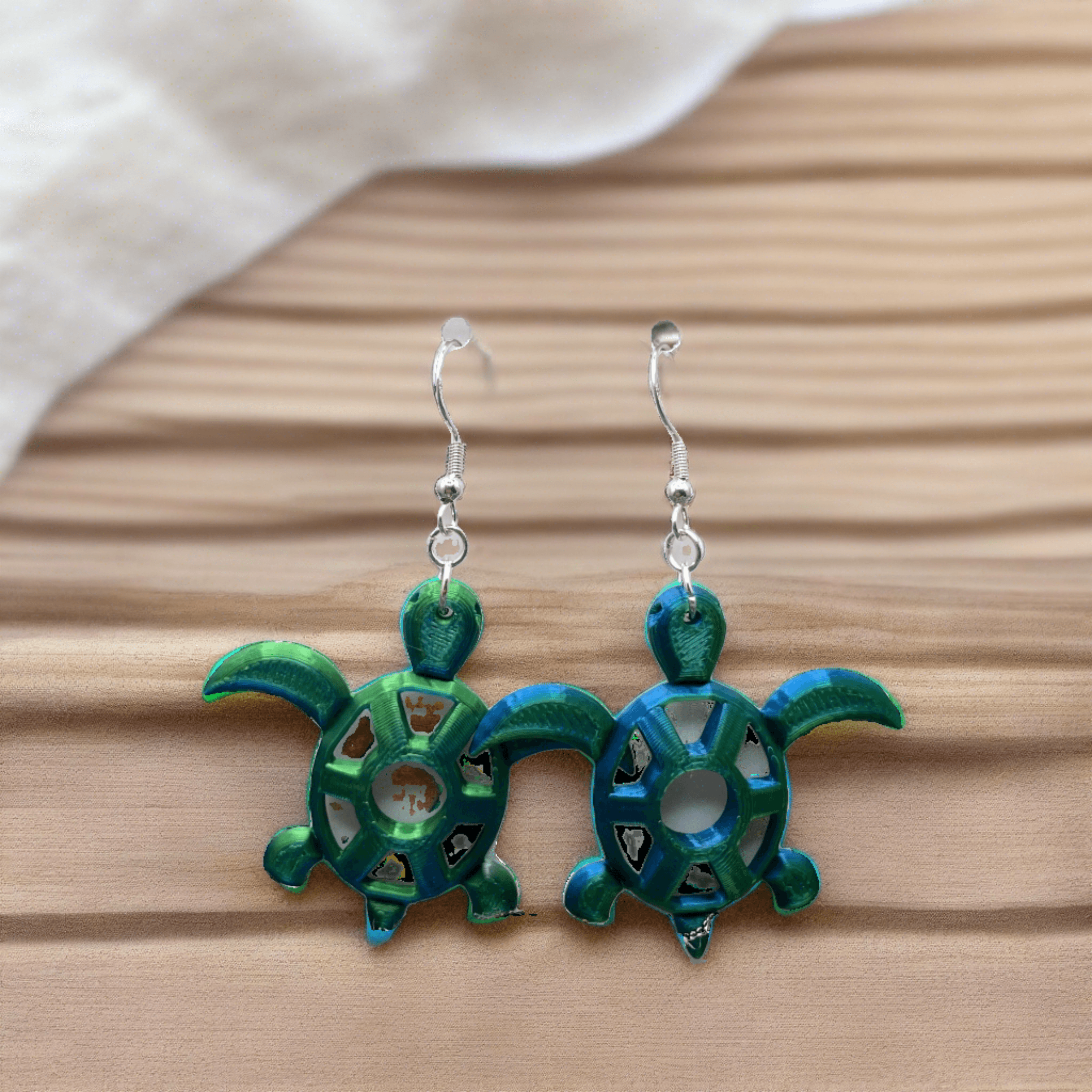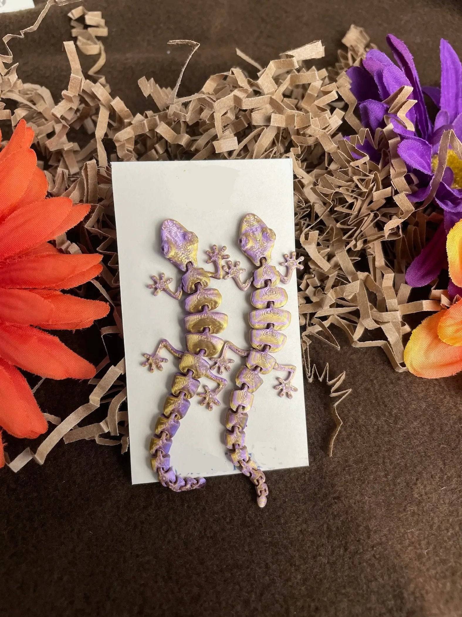 The "3D Creations" collection on 321Engrave features various 3D printed items, including fidget spinners, articulated crystal fire dragons, and dangle hook earrings with original designs like sea turtles and double helix DNA. The collection also includes other unique items like earring display stands and reusable gift tags. These items come in a range of colors and styles, catering to both practical and decorative needs.